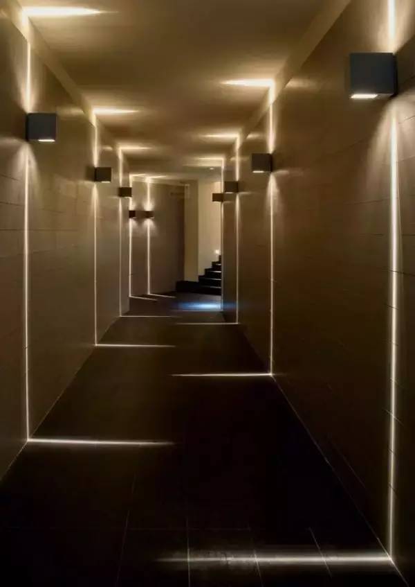 公共区域的走廊设计,还可运用光影、实木、色彩等元素,打造出的效果非常惊艳。
