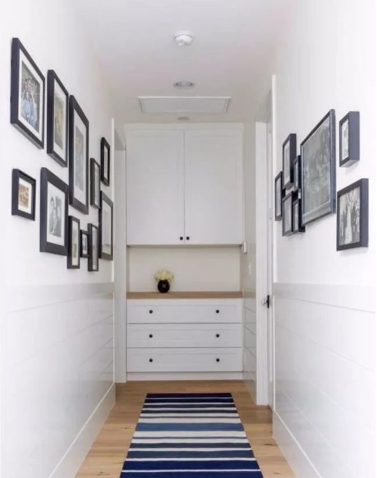 走廊可以说是艺术画作、摄影作品的绝佳展示地,选择墙面照片或者画作装饰走廊,不仅能节省空间,而且能时时刻刻地感受到家里的艺术气息。