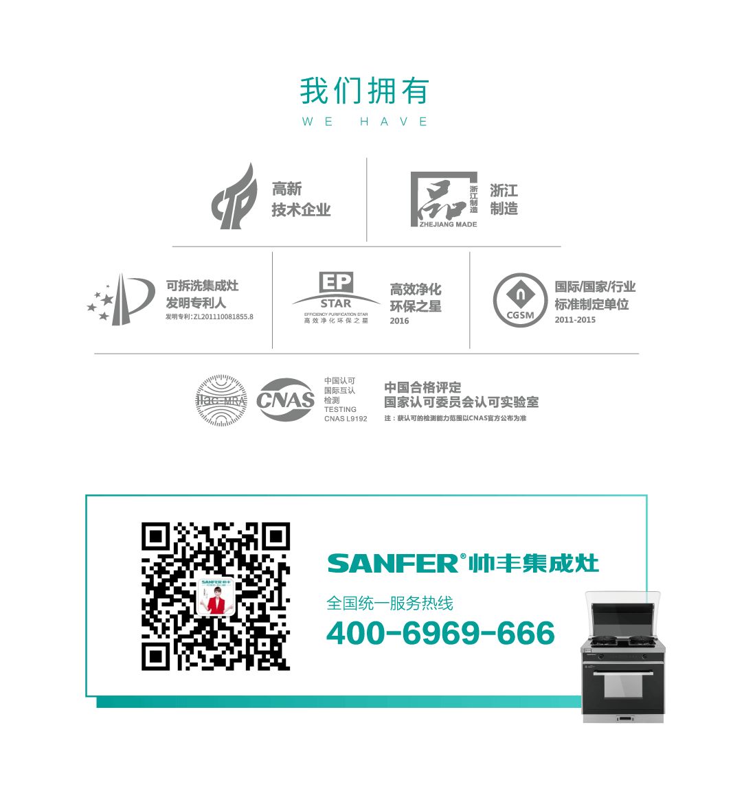帅丰实验室于2016年7月荣获国家认可,全面涵盖了油烟吸净率、油脂分离度、噪音等重要检测指标,按照相关国家标准、行业标准、地方标准的要求可开展上百项集成灶的相关安全和性能指标的检测。