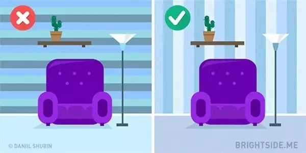 所以,墙壁颜色越淡越好,条纹尽量选择竖条纹。