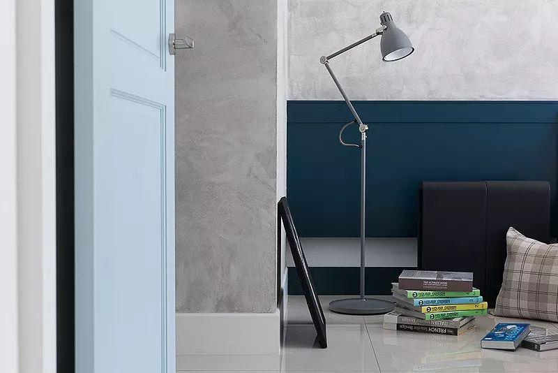 ▲主卧灰色的背景墙有点工业风的味道,主卫改为衣帽间,虽然没有过多的装饰,但整体感觉非常舒适。