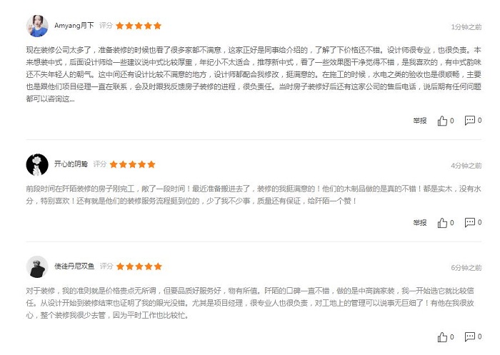 其实细心的网友,完全可以从评论中搜集到装修公司的优缺点。比如从阡陌装饰的口碑中就可以明显感受到阡陌装饰的施工是强项。众多网友都肯定了这一点,而且施工管理的项目经理团队在行业内口碑爆表,收到了众多业主的锦旗感谢。不过有的装修公司设计师团队厉害,设计的效果图很漂亮,所以大家可以结合自己的需求进行选择。