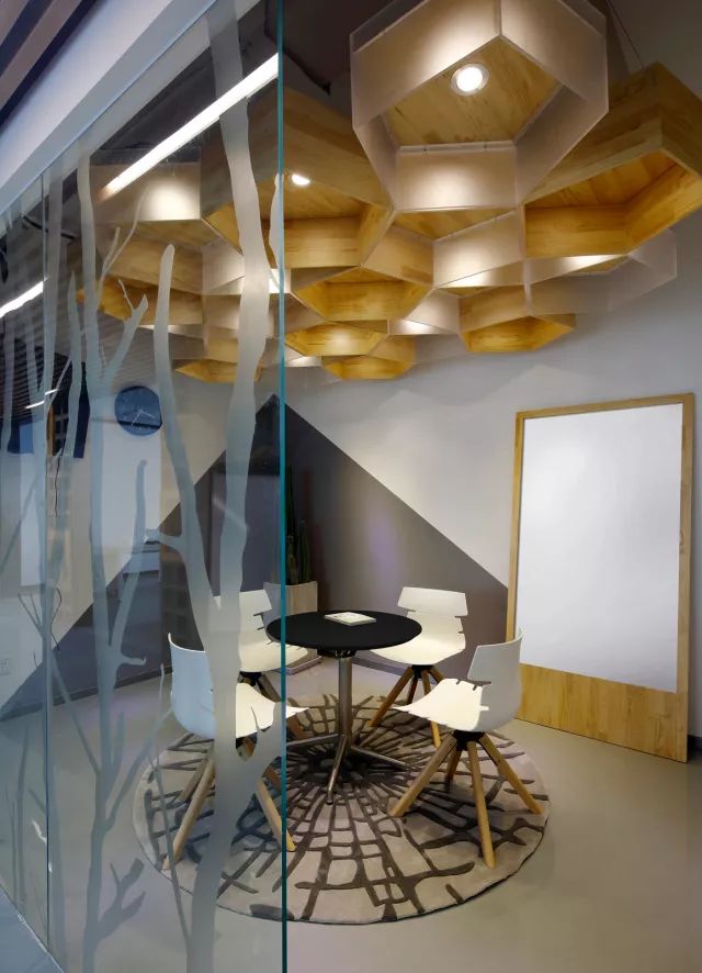 令这个装置艺术般的讨论区打破开放式工位的沉闷,