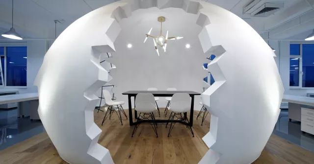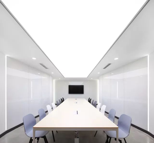 也首次尝试了全白色调的通透会议室,