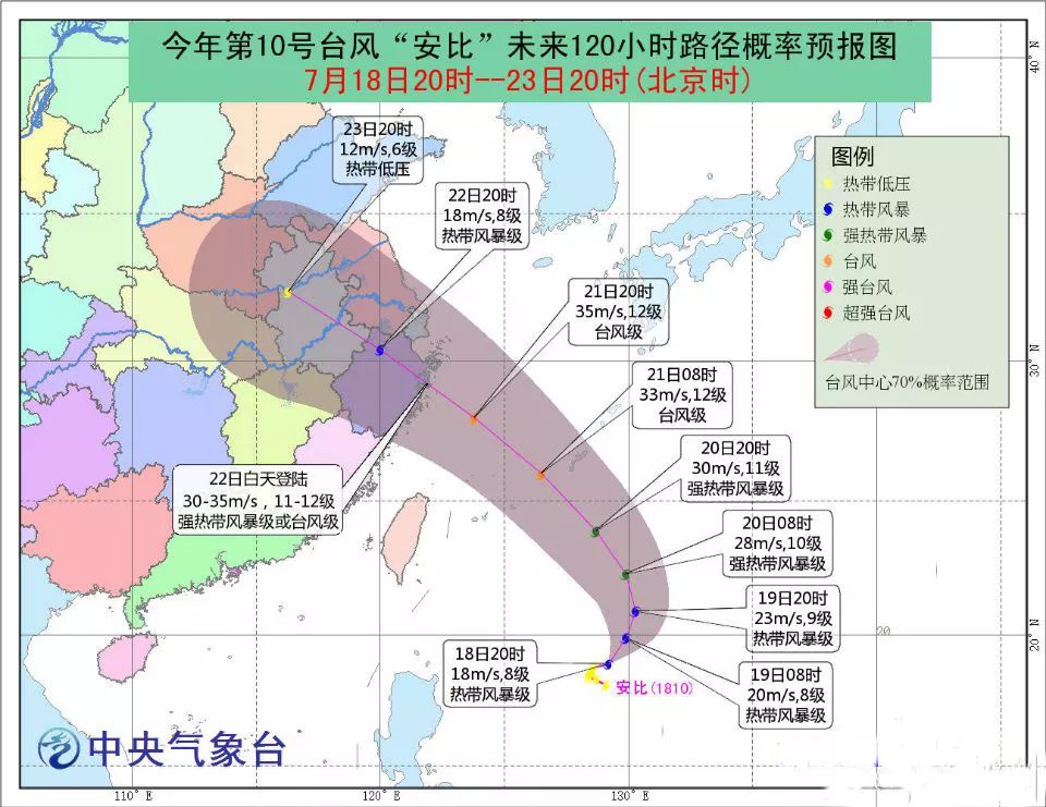 据中央气象台预报,今年第10号台风“安比”(强热带风暴级)的中心今天05时位于距离上海市东南方向约210公里的洋面上,中心附近最大风力10级(28米/秒),中心最低气压为980百帕。预计,将以每小时23公里左右的速度向西北方向移动,强度变化不大。受“安比”影响,中午前后合肥市开始出现降水,平均风力4级左右、阵风7级左右。预计:23号,合肥部分地区有阵雨或雷雨。请注意加强防范。