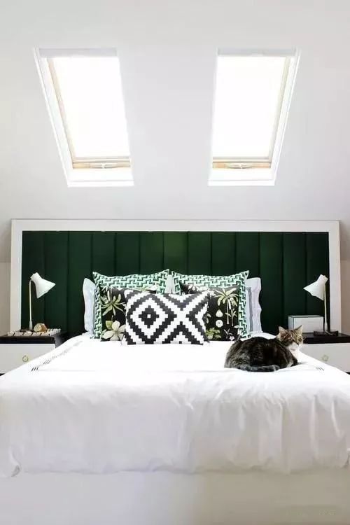 ▲对软垫床头板的进一步灵感 - 将两个特别高的软垫板在床后并排放置,产生了戏剧性的效果。