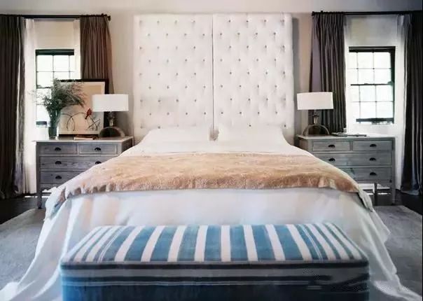 ▲这个超大的软垫床头板让你的卧室看起来特别舒适。