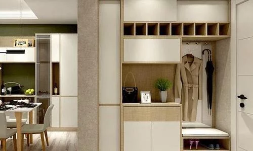 在打造时我们可以选择靠墙打,这样既可以节省空间,又能够保证玄关的储物能力,让玄关保持干净整洁,避免弄得乱糟糟的。