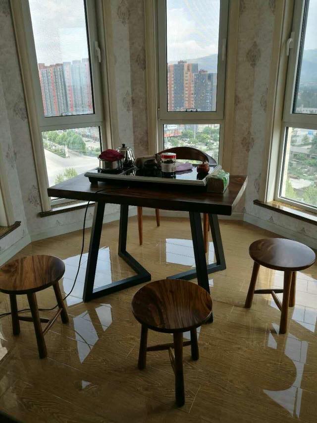 大板家具就非常适合在工业风中使用,一块板,一对支架,几把椅子,就组成了一个简单的餐桌或茶桌,在搭配上一些简单的装饰 一些偏灰的装饰,这样就会使整个装修风格都简单但又无处不在的透露着大气