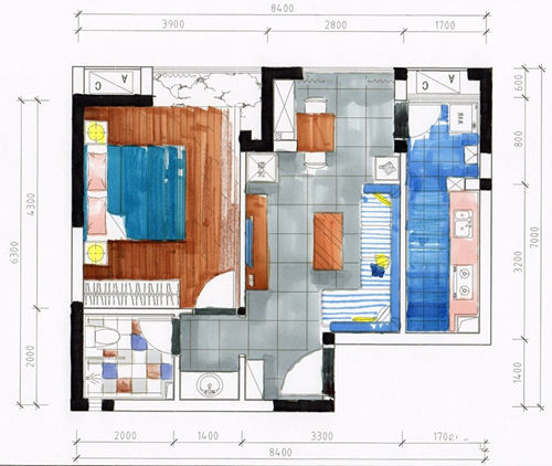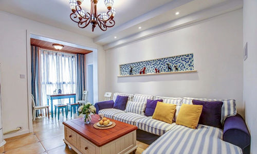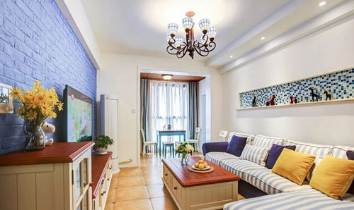 1 、 建筑面积55平,半包3万,简化空间线条,呈现清新地中海风情