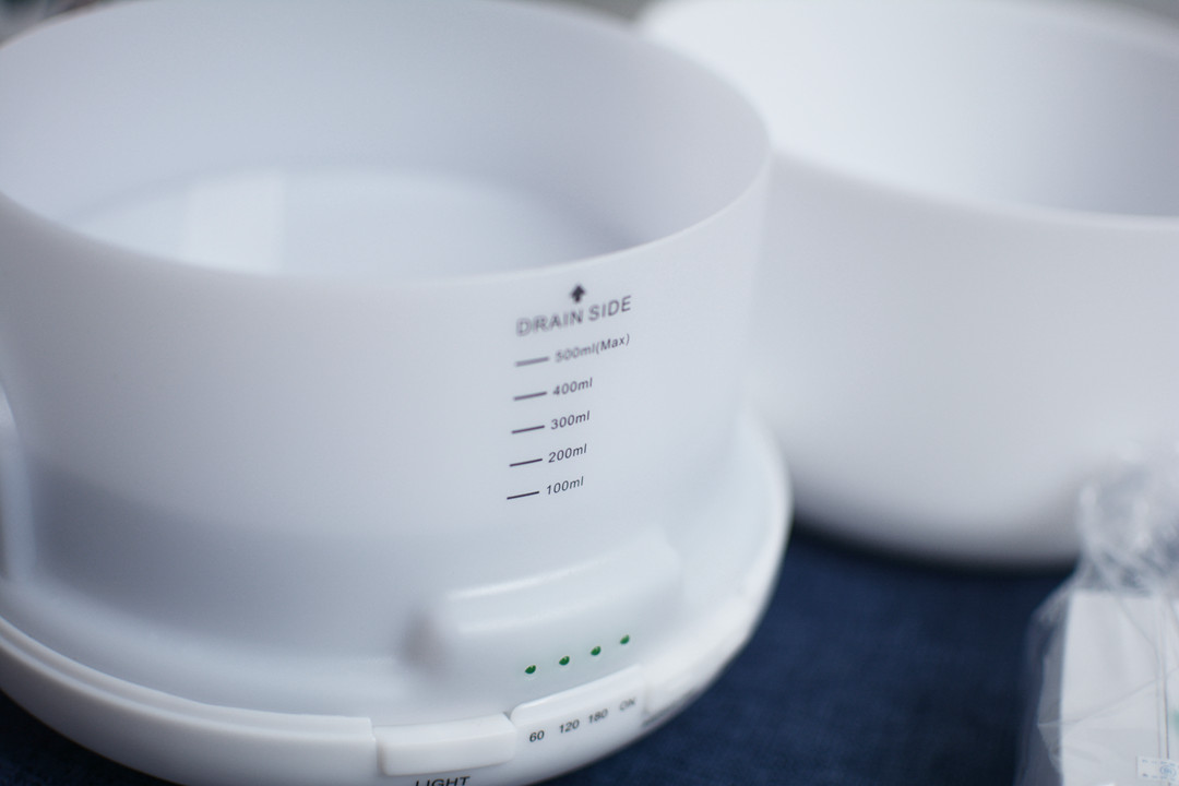 这款香薰机可以容纳500ml液体,容量还是蛮大的。加入精油后可以持续出雾10个小时,绝对够支撑我睡一夜的了。香薰机有60/120/180分钟三种定时模式,里面水分用尽的时候就会自动断电,这点还是非常人性化的!