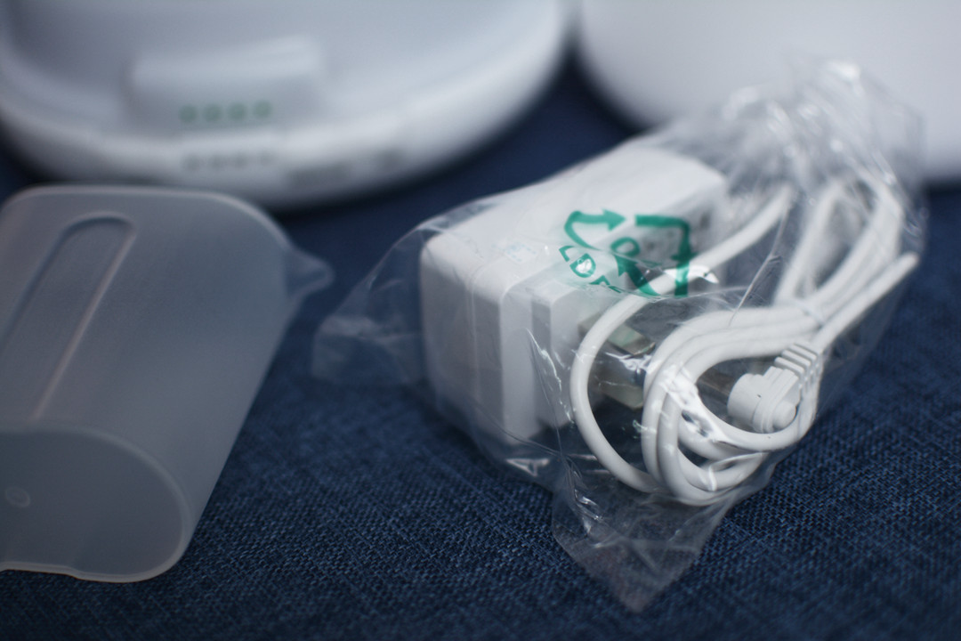 有一个插头和一个专用小插座,还送了一个注水的容器,真的非常贴心了。