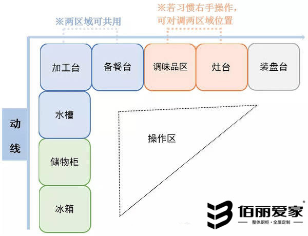 L型布局,洗切煮流畅分区,储物柜的拉手设计,手感光滑,推拉省力,减轻劳动强度。