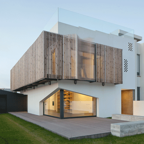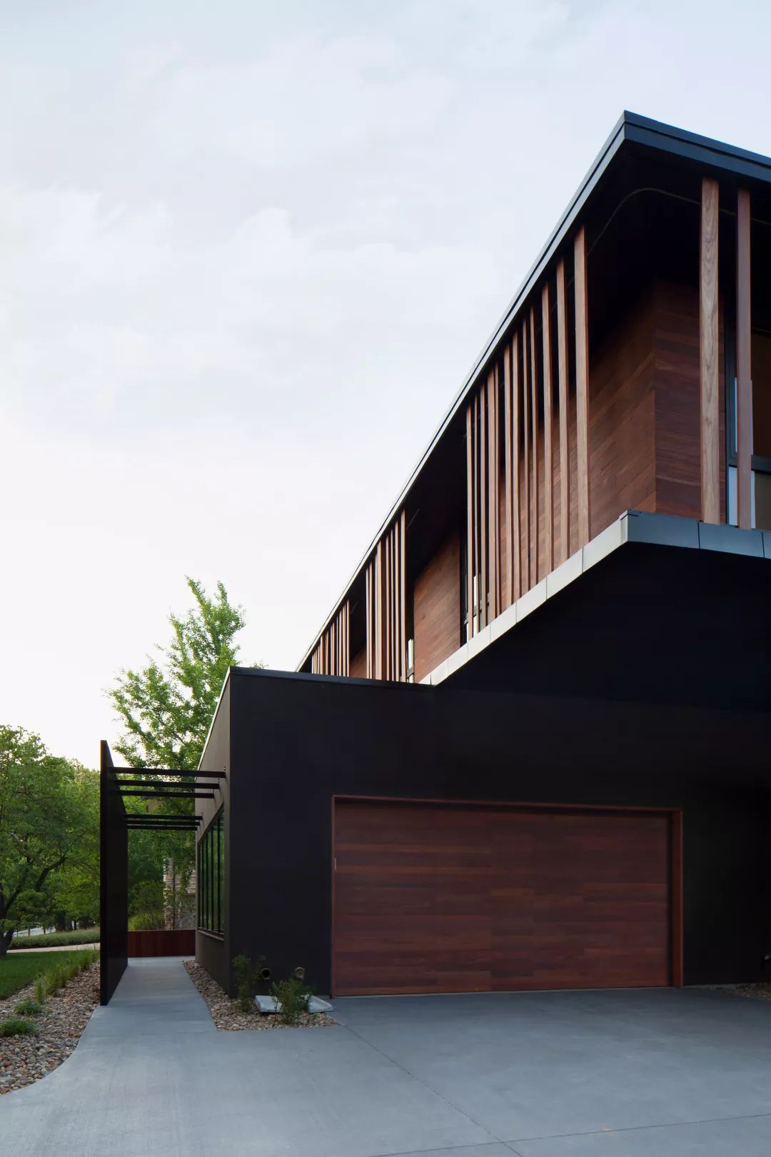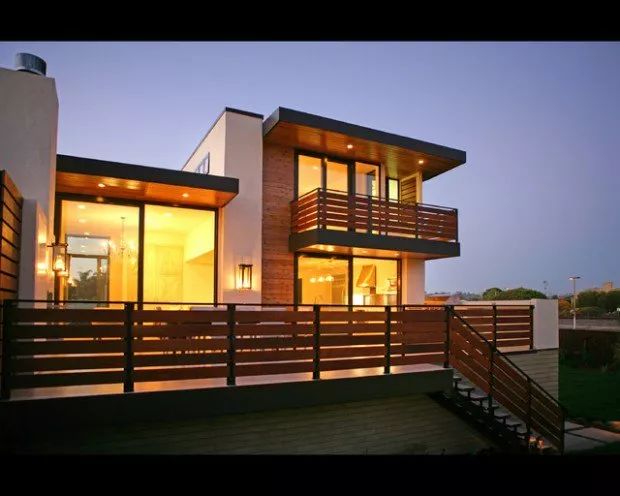 阳台上设有板条栏杆和带有蝙蝠状的天花板