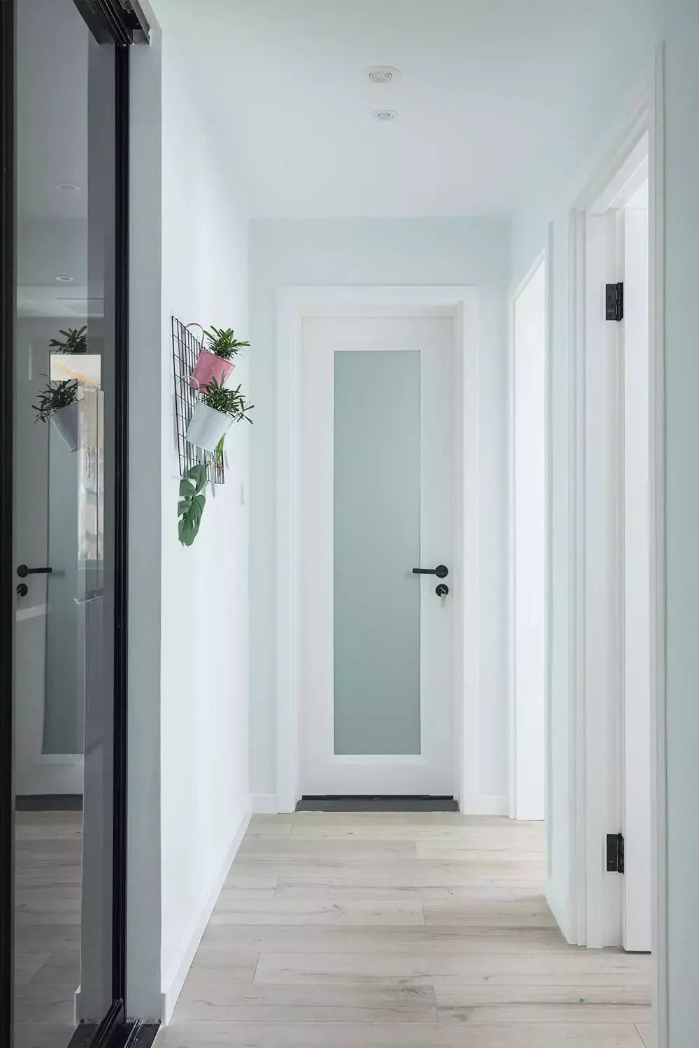 把原来进深长的走廊做了1,8米的黑框厨房推拉门,增加厨房采光,也弱化了过道。每处门廊都能带来阳光的惊喜。