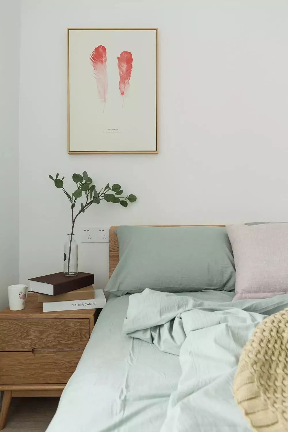 次卧薄荷绿的床品和粉色的窗帘,让夏天变得更加清爽。