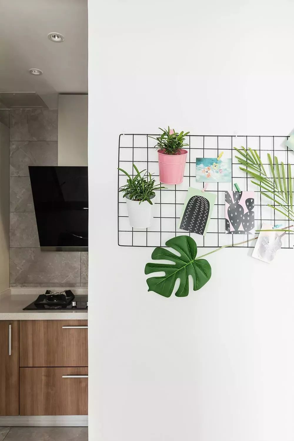 厨房与客餐厅相连,旁边的夹式照片墙,体现出了生活的生动感。