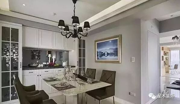 高雅灰色。灰色为基底的空间,搭配白色线板特别有味道,衬托出古典设计的沉稳调性。