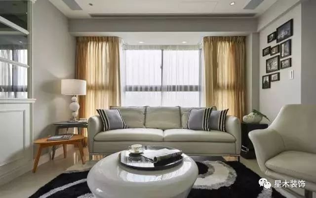 注入暖度。运用皮革沙发、大地色窗帘等家饰软件,为简练的空间注入一丝生活的暖度。