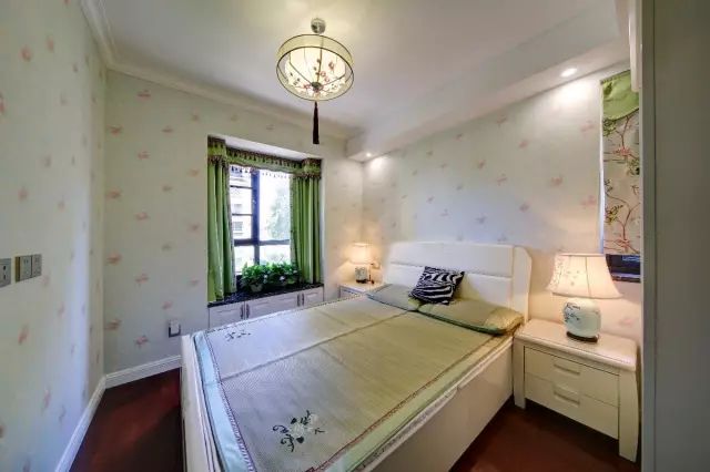 次卧墙面贴上清新活力的壁纸,简洁清新的搭配显得舒适又惬意。