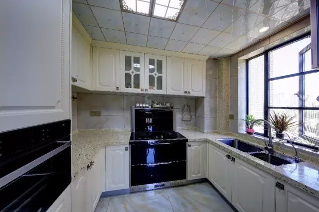 U型的大厨房,整体以简洁实用的布置,为主人提供了一个舒适宽松的烹饪环境。