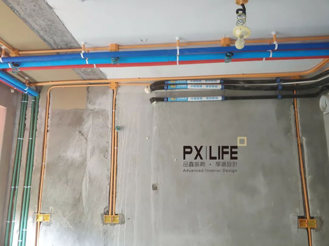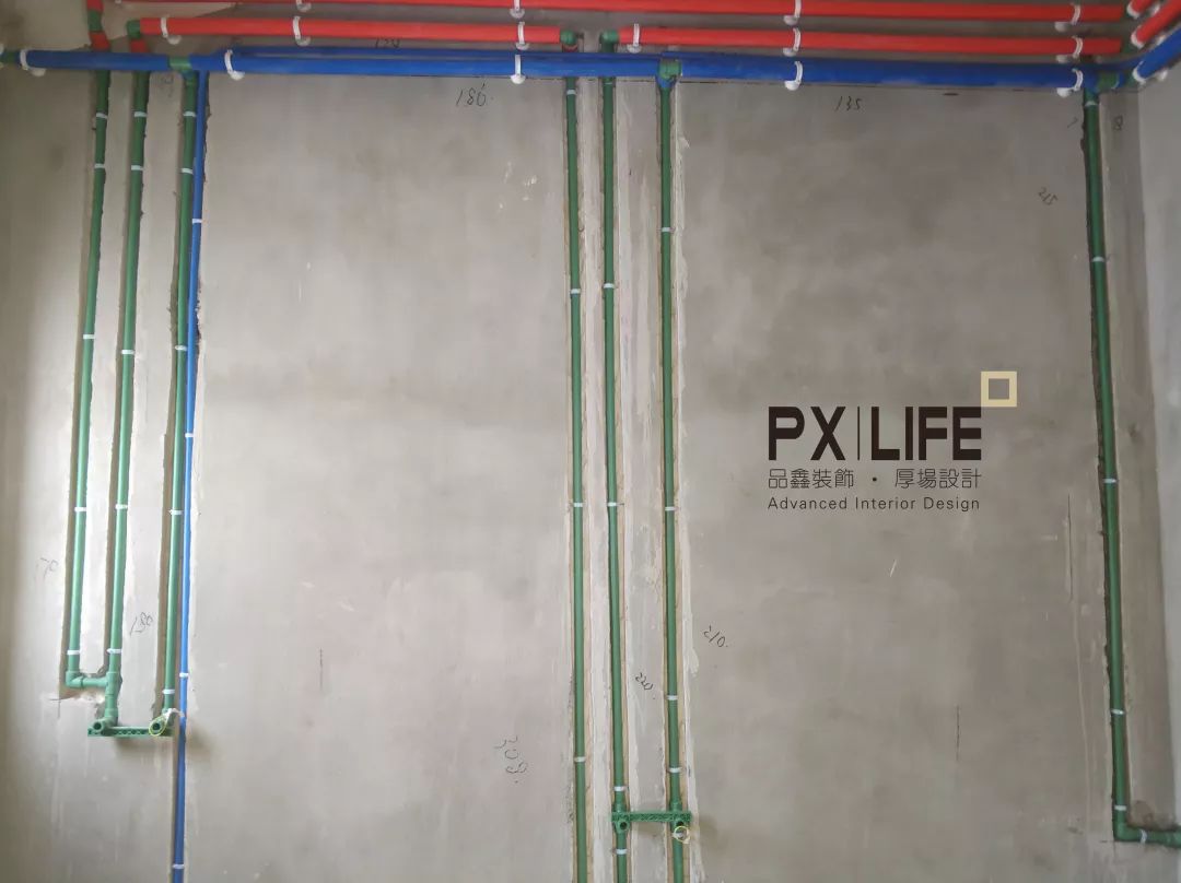 冷热水管区分清楚。使用海绵包裹,一方面减少热水的散热,另一方面也减少水流过的噪音。