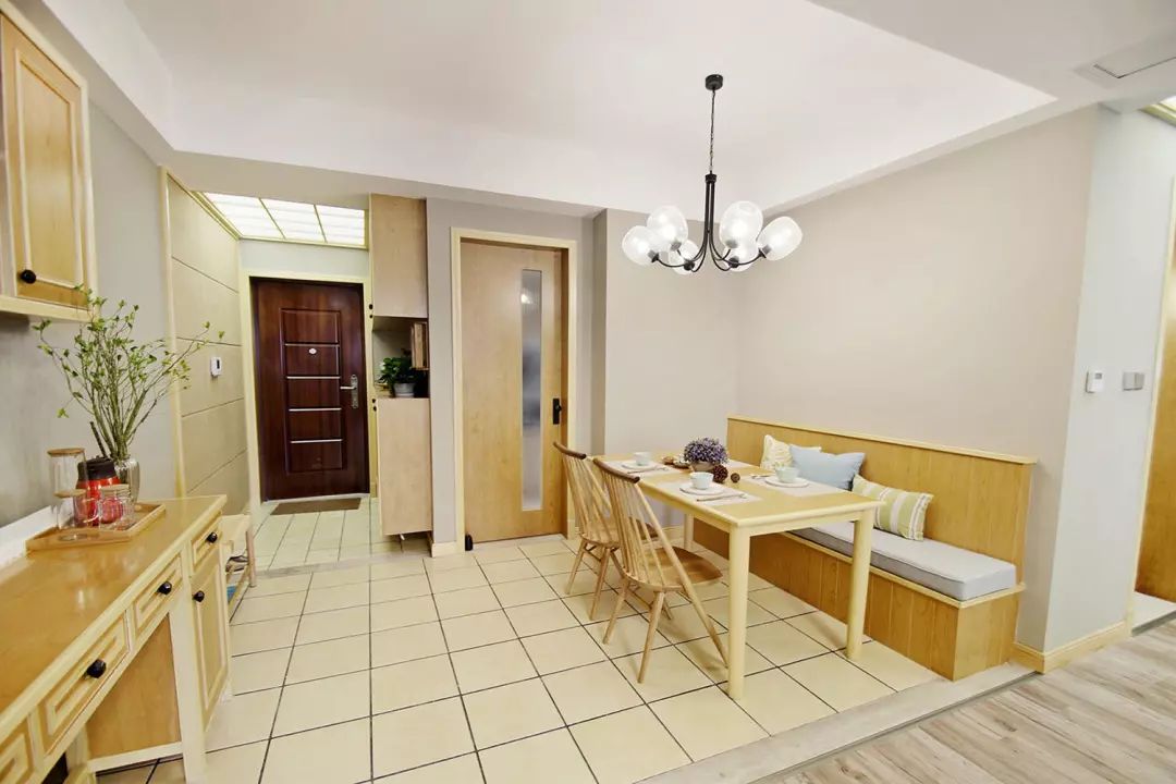 餐厅空间较为紧凑,因此在餐厅安置了卡座,可以容纳更多的人,同时也兼具收纳功能。