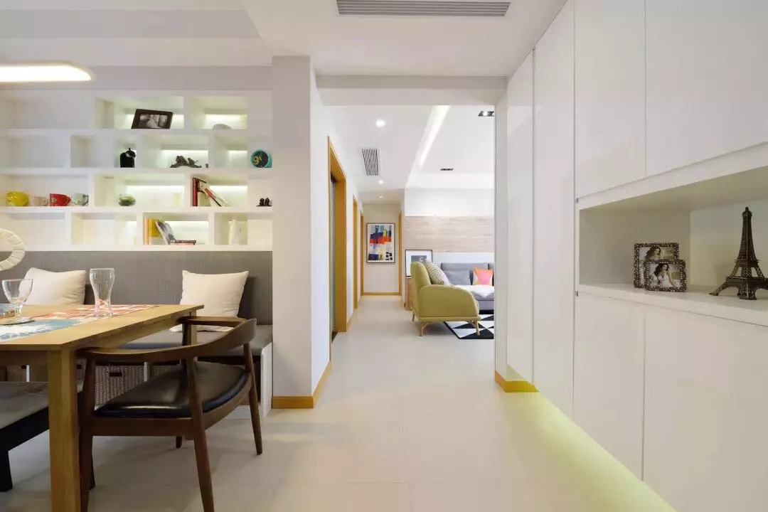 从入门玄关处看,房子的纵深感很强,纯白地板搭配纯白色墙体,显得格外整洁干净。