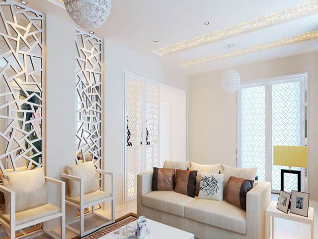 镂空隔断在后期的装饰中,用镜子反射光线能增加空间感。有两种方法:其一、将镜子挂在窗口附近。其二、在窗口附近的位置挂上一套照片墙,利用玻璃相框来反射光线,同时也能让墙壁产生一种发亮的感觉。而针对房间不够开阔明亮的问题,玻璃、金属等通透感比较强的材料能有效解决这一问题。比如磨光材质的橱柜柜门,镂空设计的隔断,反光材质的家具与地砖,这一系列的组合能让空间形成一个整体,不仅起到了装饰效果,还拉大了空间的高度与宽度,那么房间自然就变得宽敞明亮起来了。