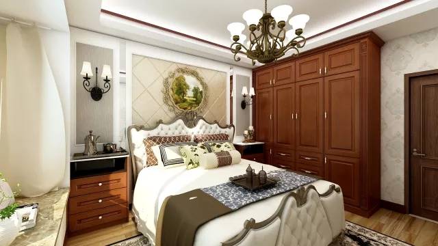 好看的刀型和颜色显得空间很有格调。烘托出卧室浓文气