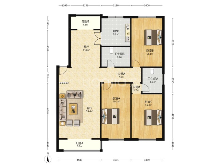 三室两厅两卫一厨