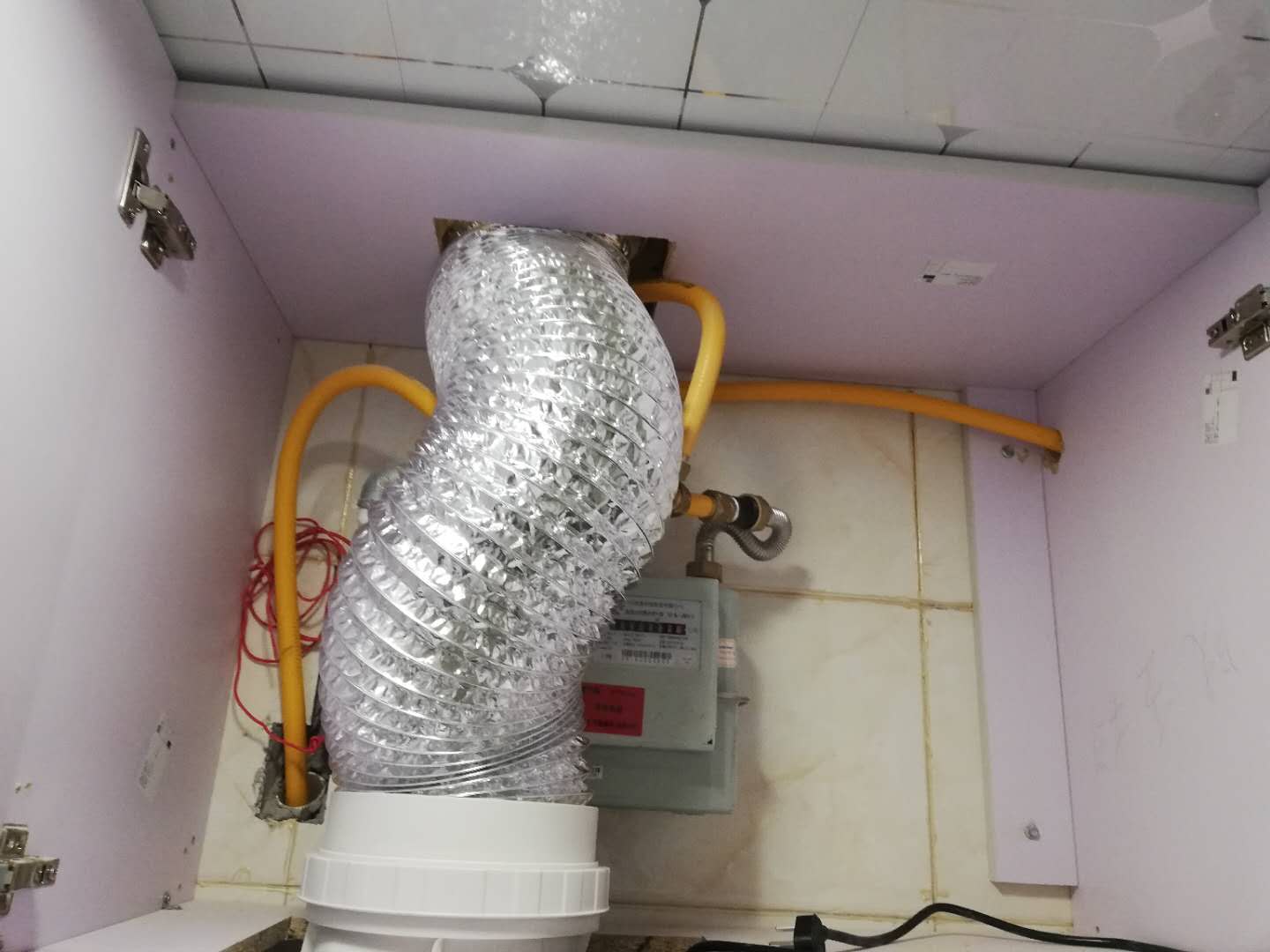 看起来图片左边是墙,你排烟口就出去了。排烟口这么走没问题。就是煤气表在一起安全一点就整理好拿隔板当一下