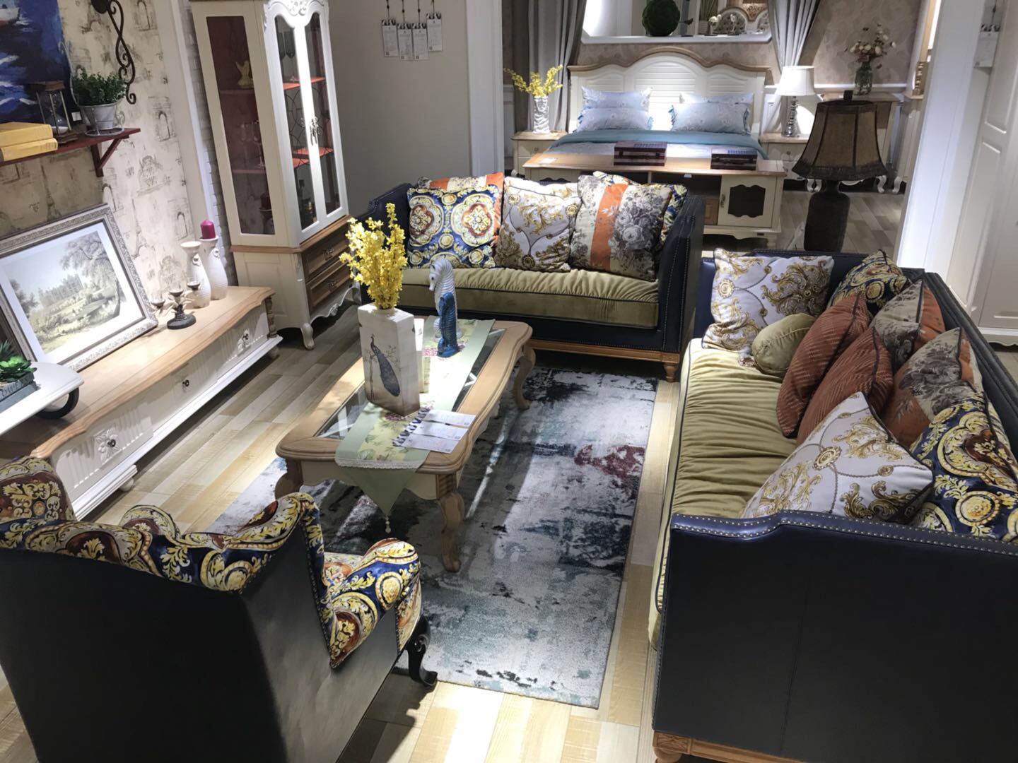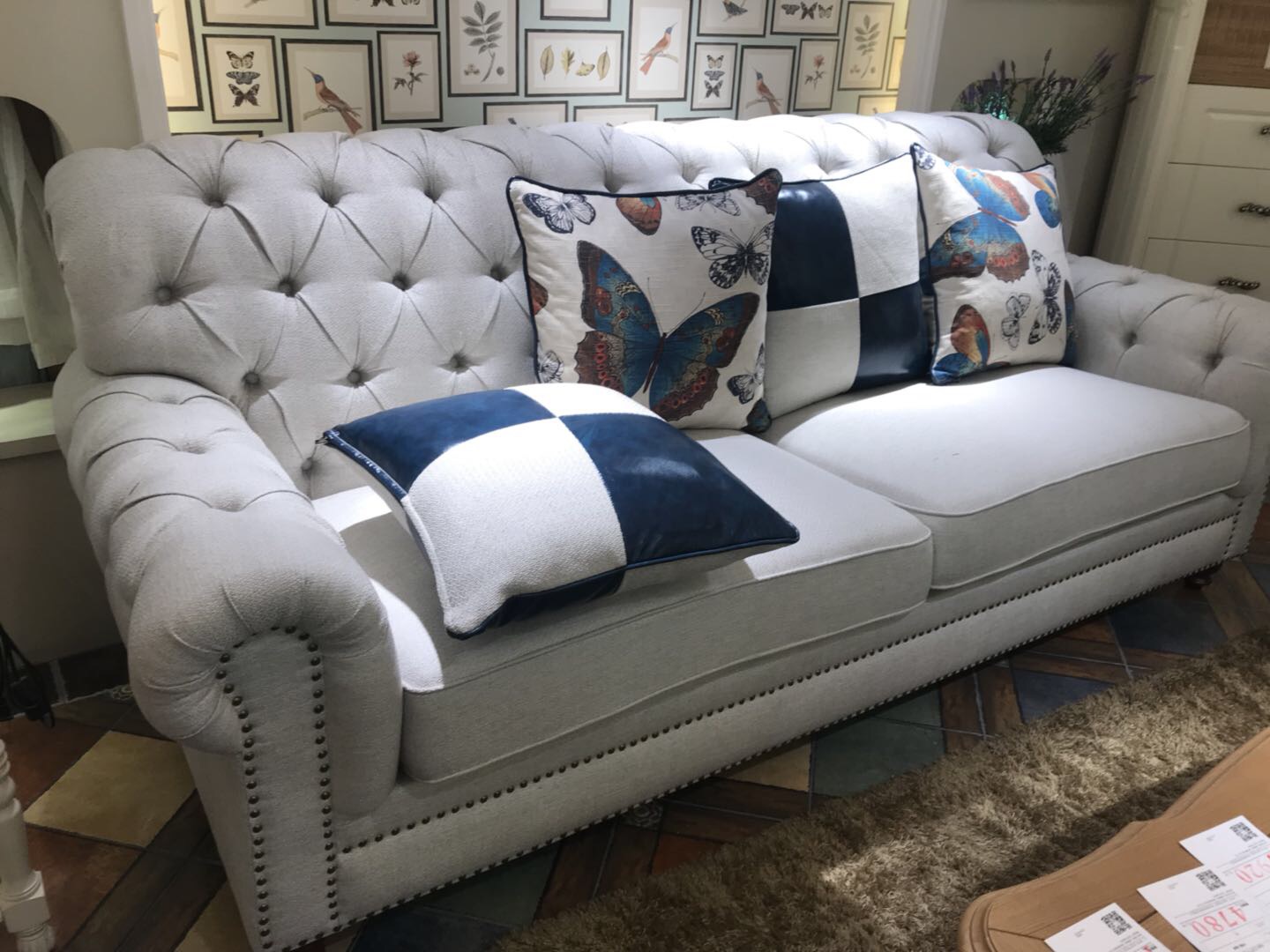 原木色 灰色系 布衣实木框架沙发,实木茶几!