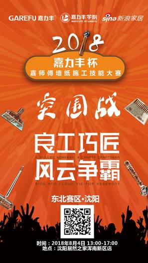 2018“嘉力丰杯”嘉师傅墙纸施工技能大赛复赛第二站将于8月4号在沈阳居然之家浑南新区店开赛。