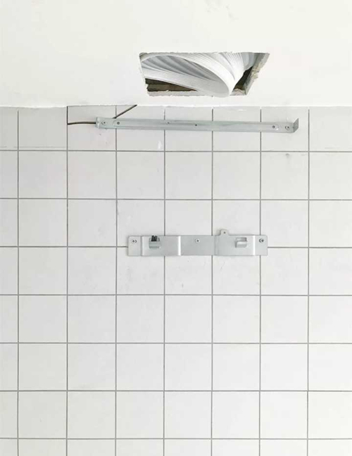 硬装完了之后是安装季,以为就没事了吗?呵呵,比硬装阶段还要糟心。原本存在但是看不出来的问题通通冒了出来。装油烟机那天就把砖给打爆了!(瓷砖打孔正常应该用瓷砖专用钻头或者空心钻,不过人家油烟机师傅根本就没care)看到左上角那道斜斜的黑色裂缝了吗,没看清的我还以为是根电线……