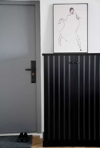 后买的门比原来的强多了,感动得要哭!柜子都是找一家做的,鞋柜想做个黑的,色板上没有,好像只能调色,从下定就开始等啊,一个鞋柜等了两个多月,拿过来以后总觉得哪里不对(门板上竖线条做错了,做成间距一样的了),让老板给换,然后继续等啊等。