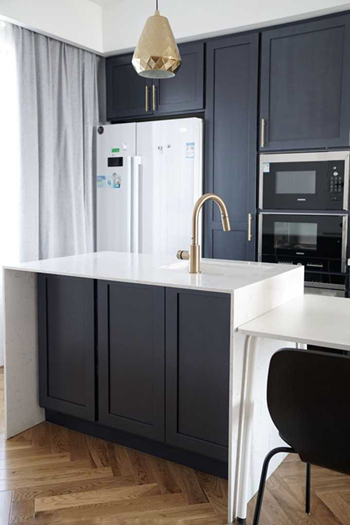电暖气,走到哪就拽到哪三、餐厅餐厅做了中岛和橱柜,打造成西厨。做台面的工人说现场弄不好,就同意让他们拿回去加工好了再拿来,然后……就给台面磨花了……当时着急赶进度,只能凑合用了,安慰自己用着用着,磨花的地方可能就没那么明显了。