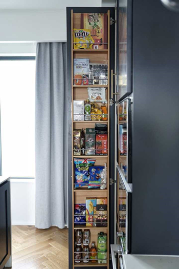 俘获无数宅男心的顶天立地零食柜……比较迷的是门上做的“大怪物”是原木色的,柜体做的是白色的,小Y说忘了当时怎么想的了,反正人一装修就开始不记事很正常。零食不能没有浪味仙!
