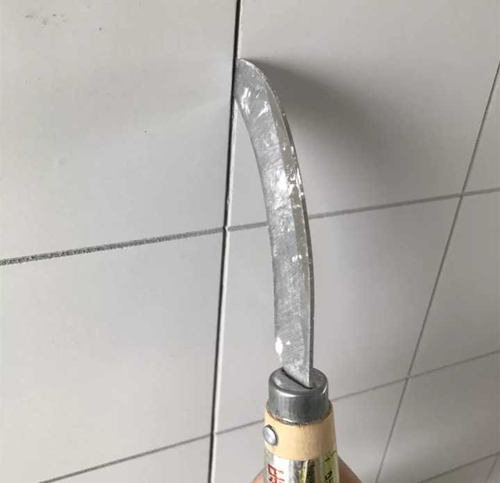 四、厨房砖刚贴好那阵,小Y看见地上放着填缝剂,就试着填了一下,当时湿的觉得颜色还挺好看,然后干了就变成很浅的灰色,小Y老公说不好看(其实小Y也这么觉得,但是人家不要面子的啊!)于是又开始清缝,家门口杂货店买了把三块钱的菠萝刀,2mm厚的,正好能伸进缝,清理十字卡,好用得不得了,尤其很深的缝。关键是只要三块钱!三块钱,你买不了吃亏,你买不了上当!提醒用的时候一定当心点,这个刀猴快猴快的。