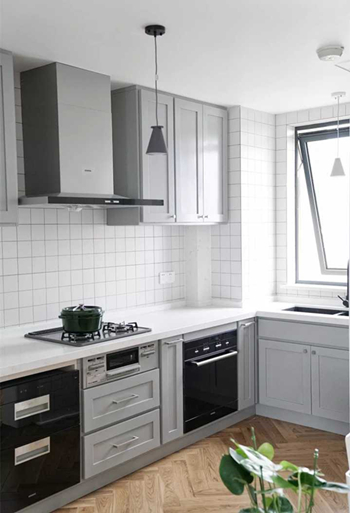 清缝完毕。经历了清缝折磨、爆瓷折磨、改插座折磨之后的厨房,最终毕业照如下——