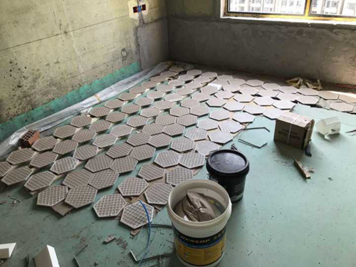 后来是让瓦工先用水泥把洞堵起来,然后让安装窗户的人用黑色防水胶沿着窗框厚厚的打一圈,小Y不放心买了透明防水胶又自己刷了一遍,有洞的地方等干了再刷第二遍,心想这样应该就不能漏了吧……修补得千疮百孔的外墙阳台贴六角花砖,干干净净的,一点都不乱,膜拜伍佰师傅的手艺。