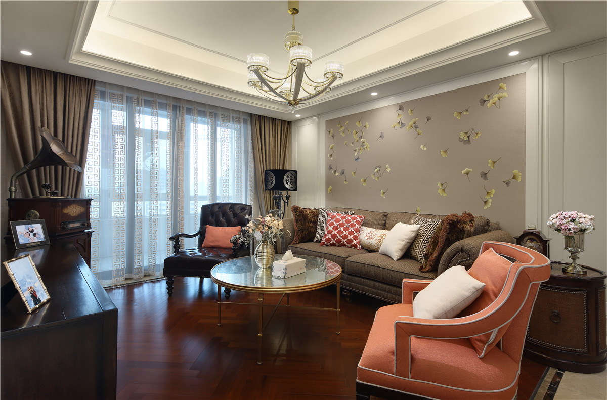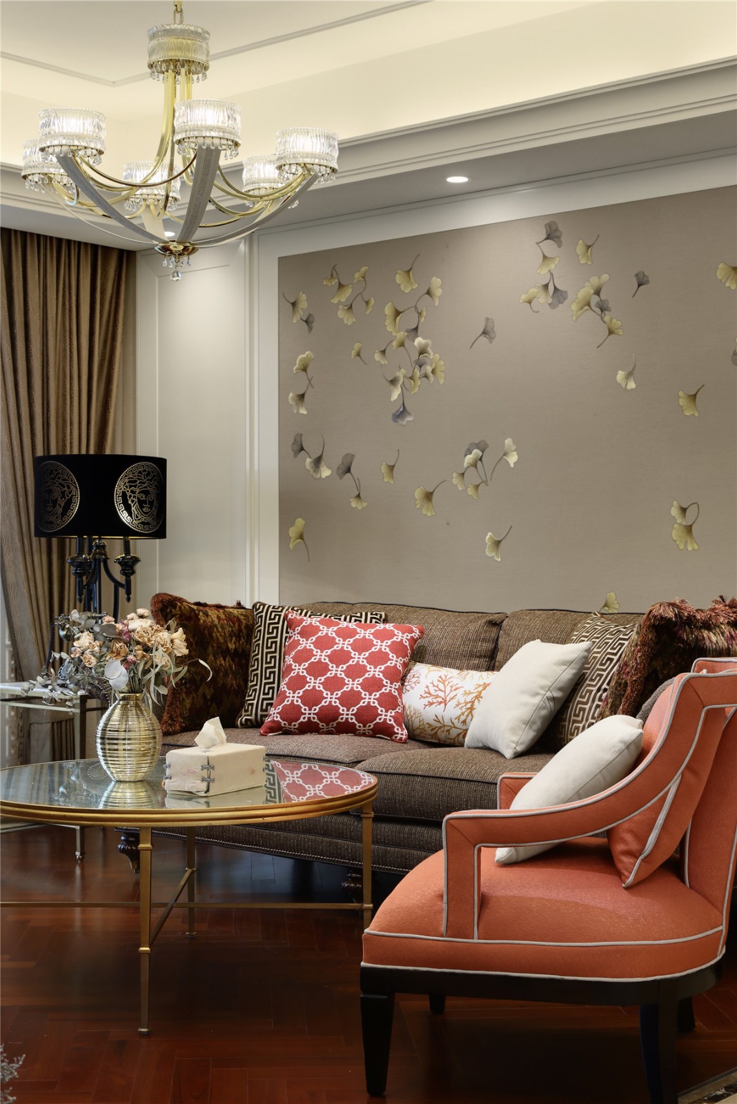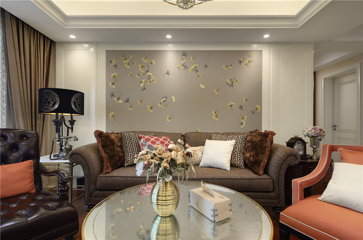 没有用过于繁琐的造型,用简约的线条和墙纸作为背景墙。