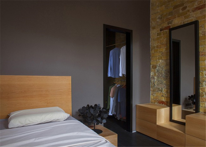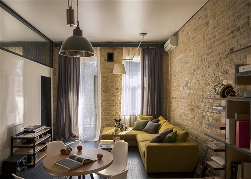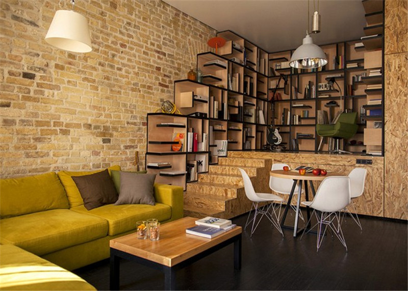 来自乌克兰的小小loft,部分裸露的砖墙和不加涂料的环保木材...