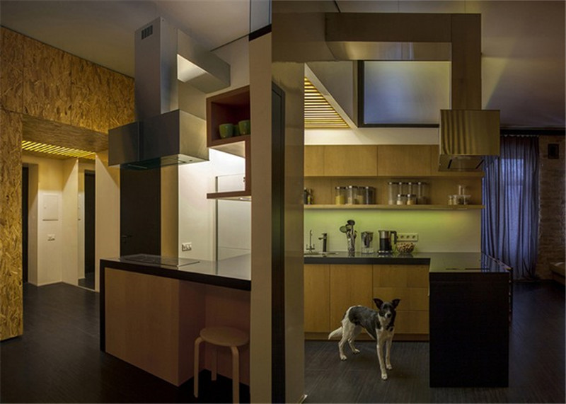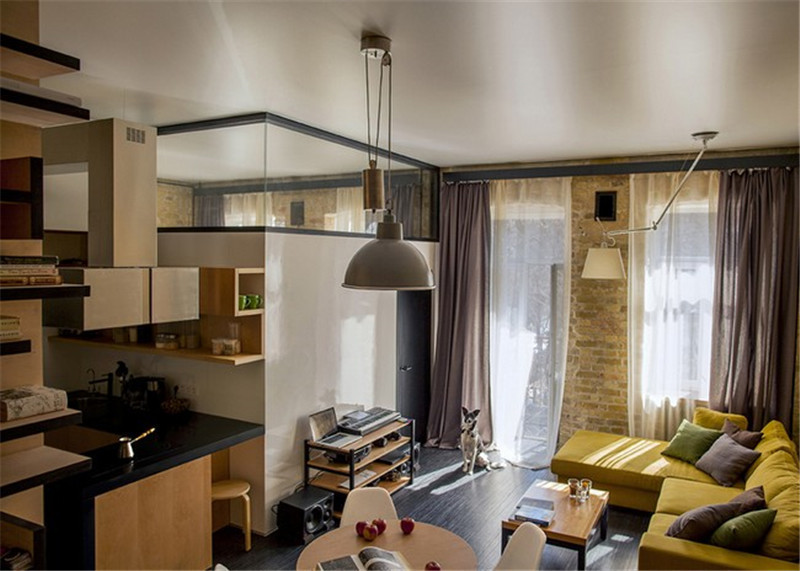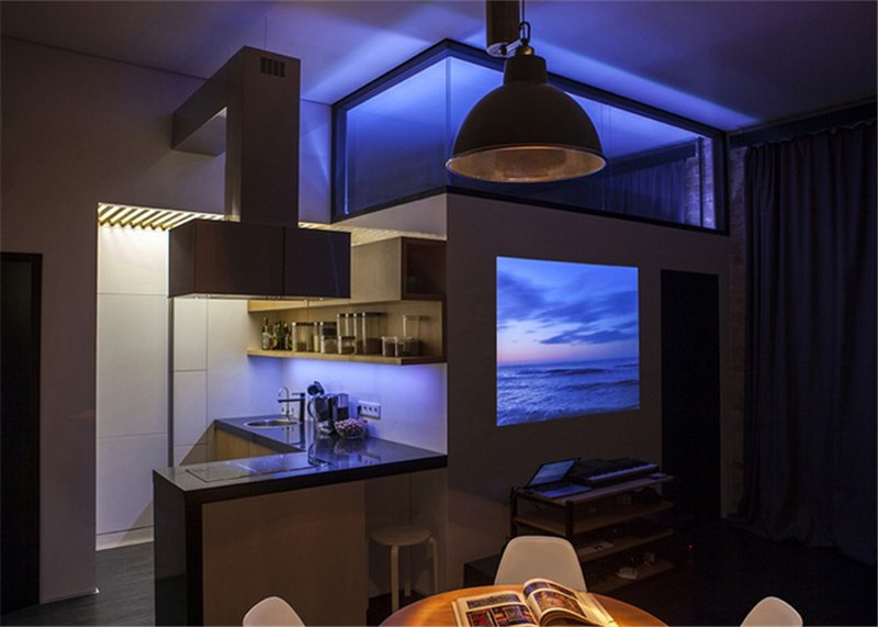 来自乌克兰的小小loft,部分**的砖墙和不加涂料的环保木材为环境营造出自然舒适的氛围,灯光设计也有小心机。夜光模式下,仿佛到了另一个空间。