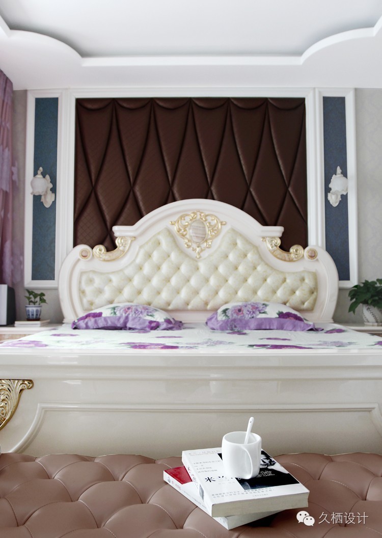 床头的软包装饰造型烘托室内的柔软质地,丰富与人之间的亲切感放在床榻上的小物件让主人突然有种想要喝一杯下午茶的主意悠然自得,这便是生活的魅力所在