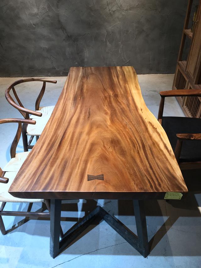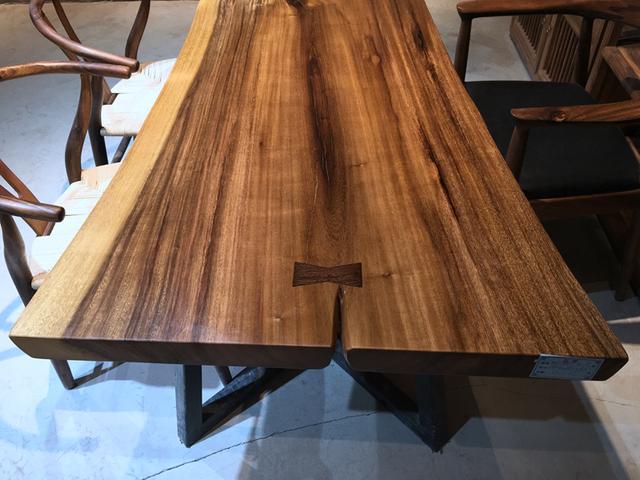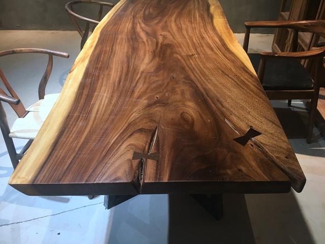 一些我们平时在实木大板上看到的燕尾榫材质都是鸡翅木的,为什么要在大板上加是他呢,主要原因就是增加板子稳定性,防止板子继续开裂,还有就是在实木大板上点缀,装饰