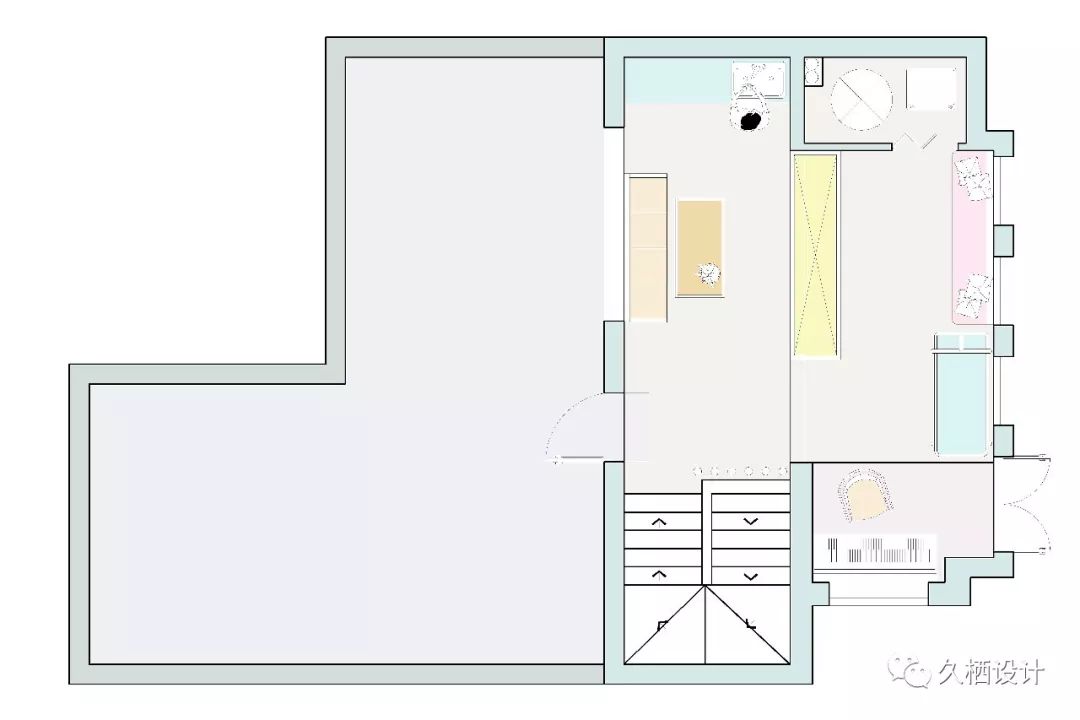 三楼部分是一个相对于下面两层,较小的空间之前想要进来,需要从二楼书房的窗户处爬上来所以在二三层部分加建了两层转角楼梯