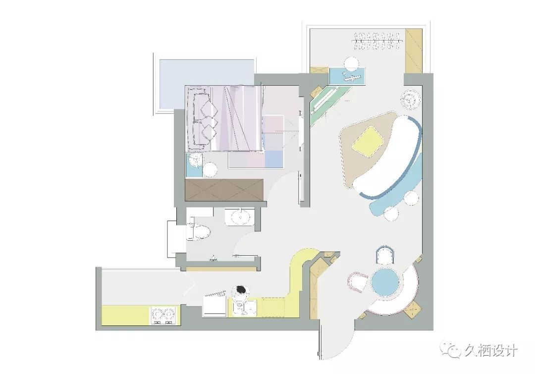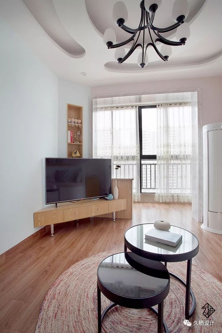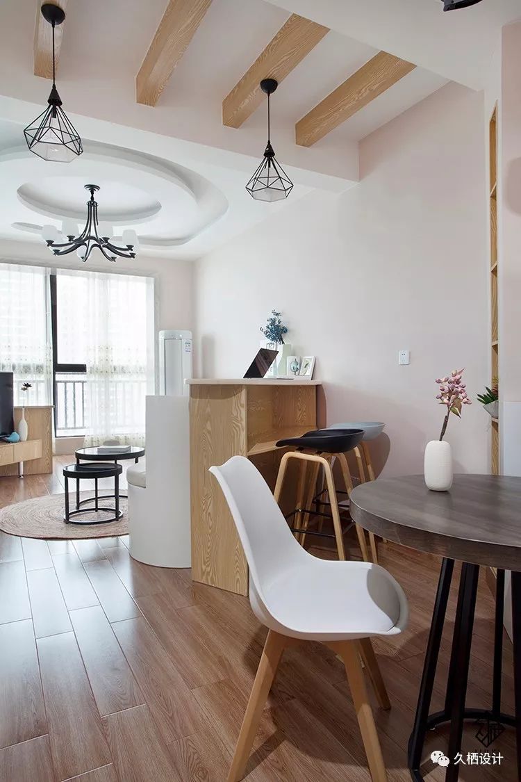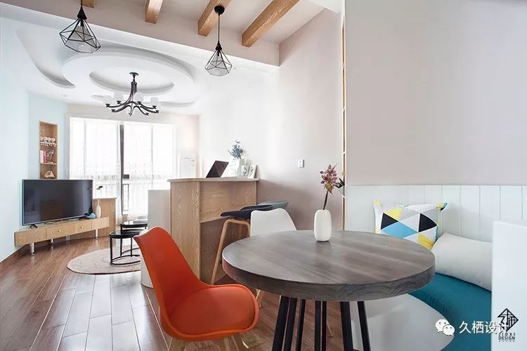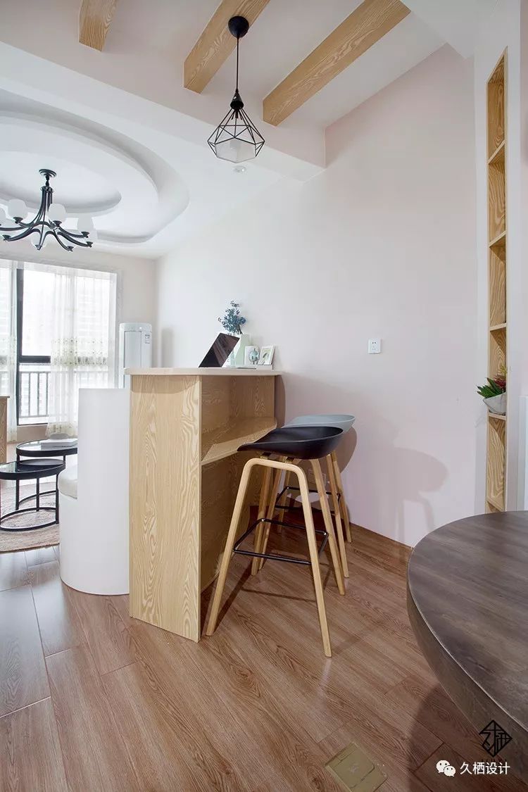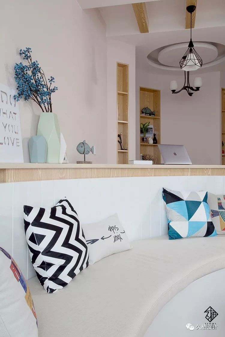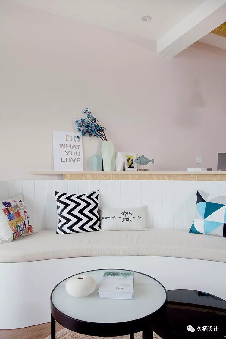 以弧形为主的设计,让这个60平米的小房子有效得到释放,宽敞不拥挤