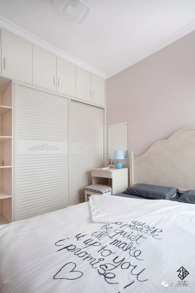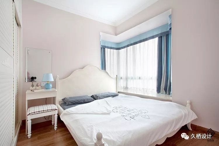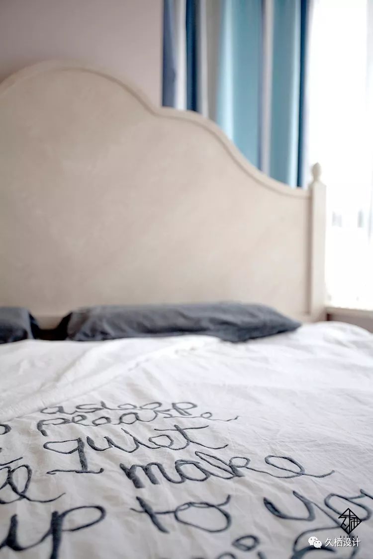 卧室的面积比较小,原本没有一个很好的摆放形式索性将床直接依靠在飘窗的位置,好像躺在上面宽敞了不少