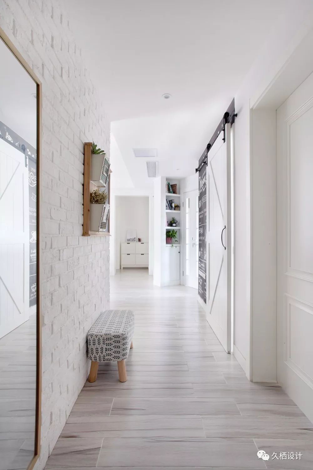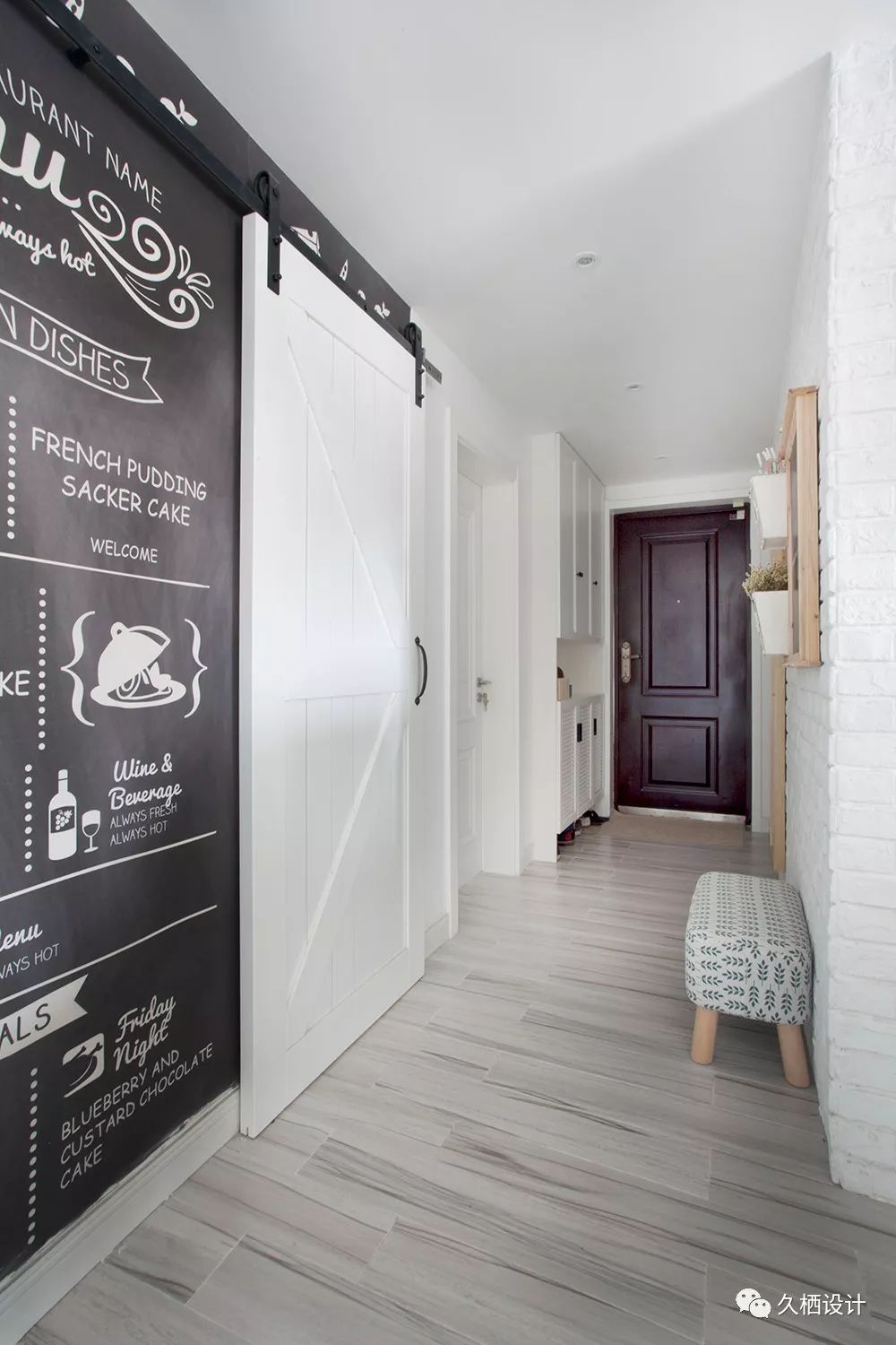 白色的谷仓门与黑板墙装饰墙相得益彰,成为玄关处的一道亮点